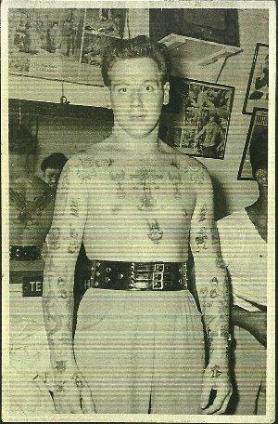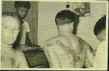 The sailors and soldiers getting inked by Johnny Two Thumb in the 50s.